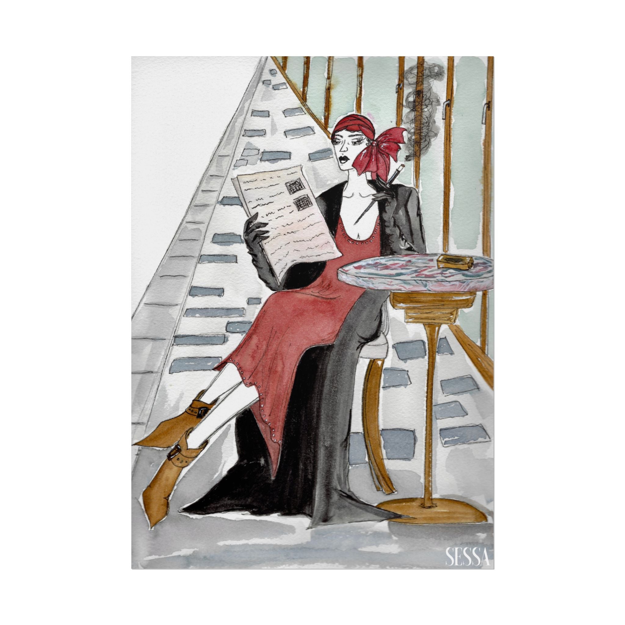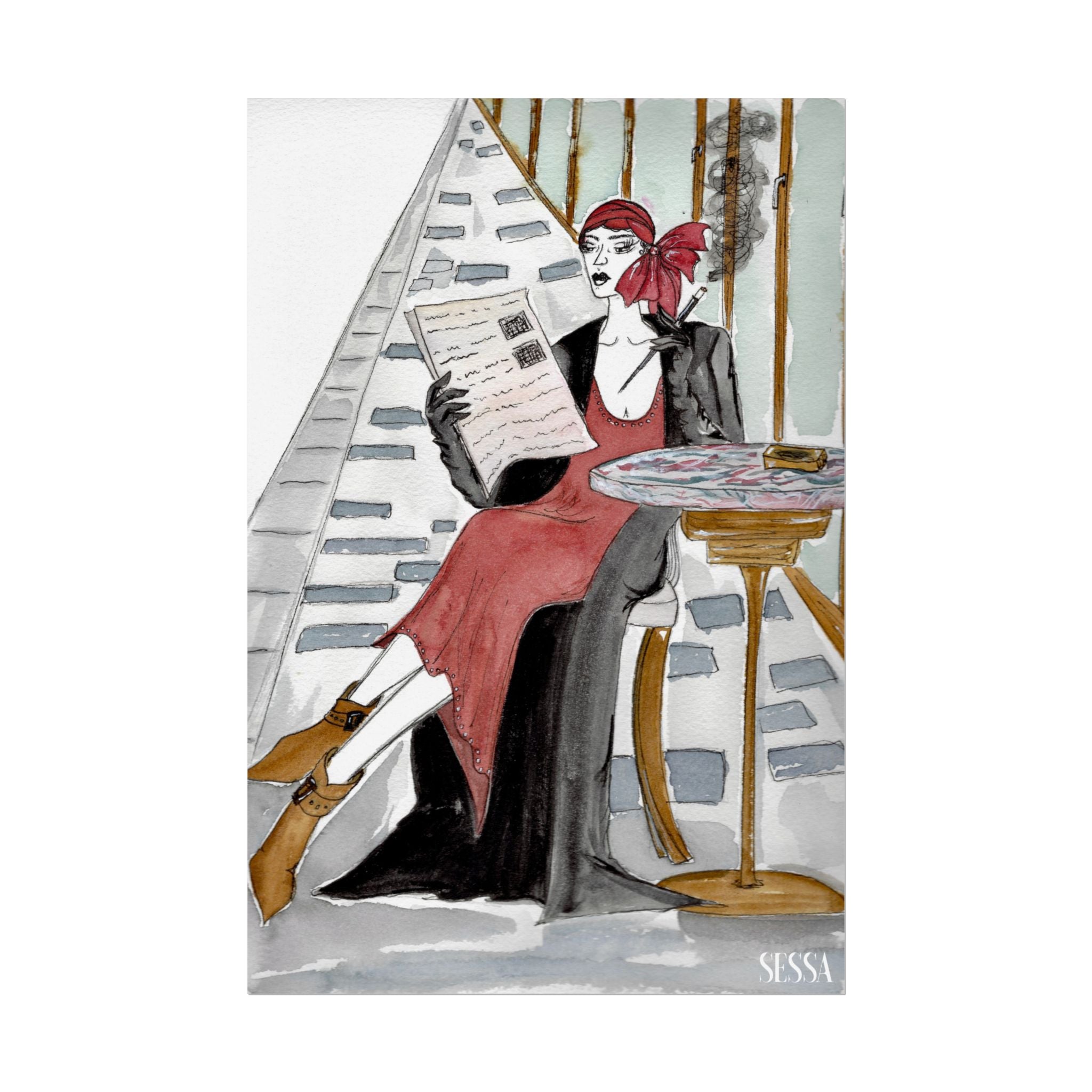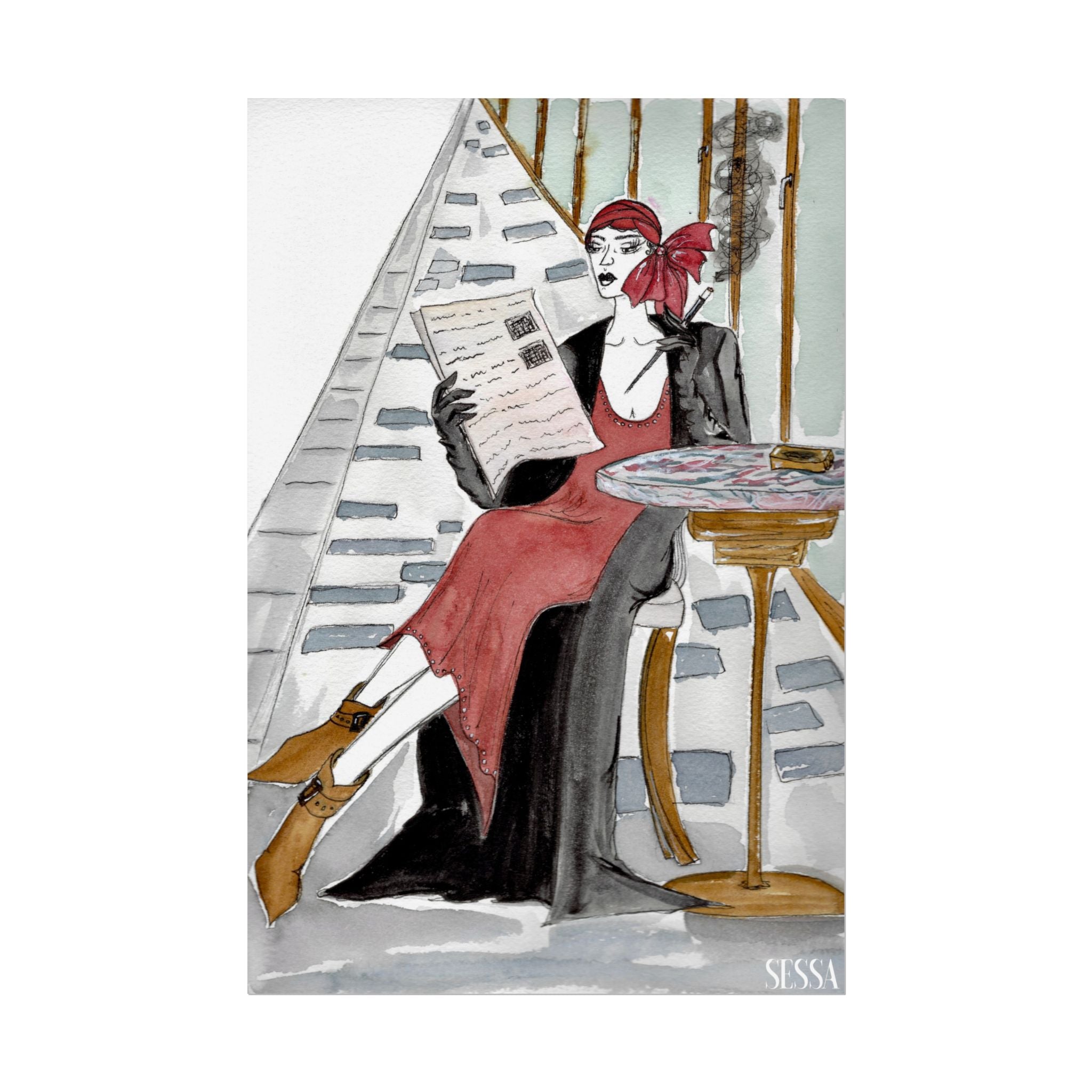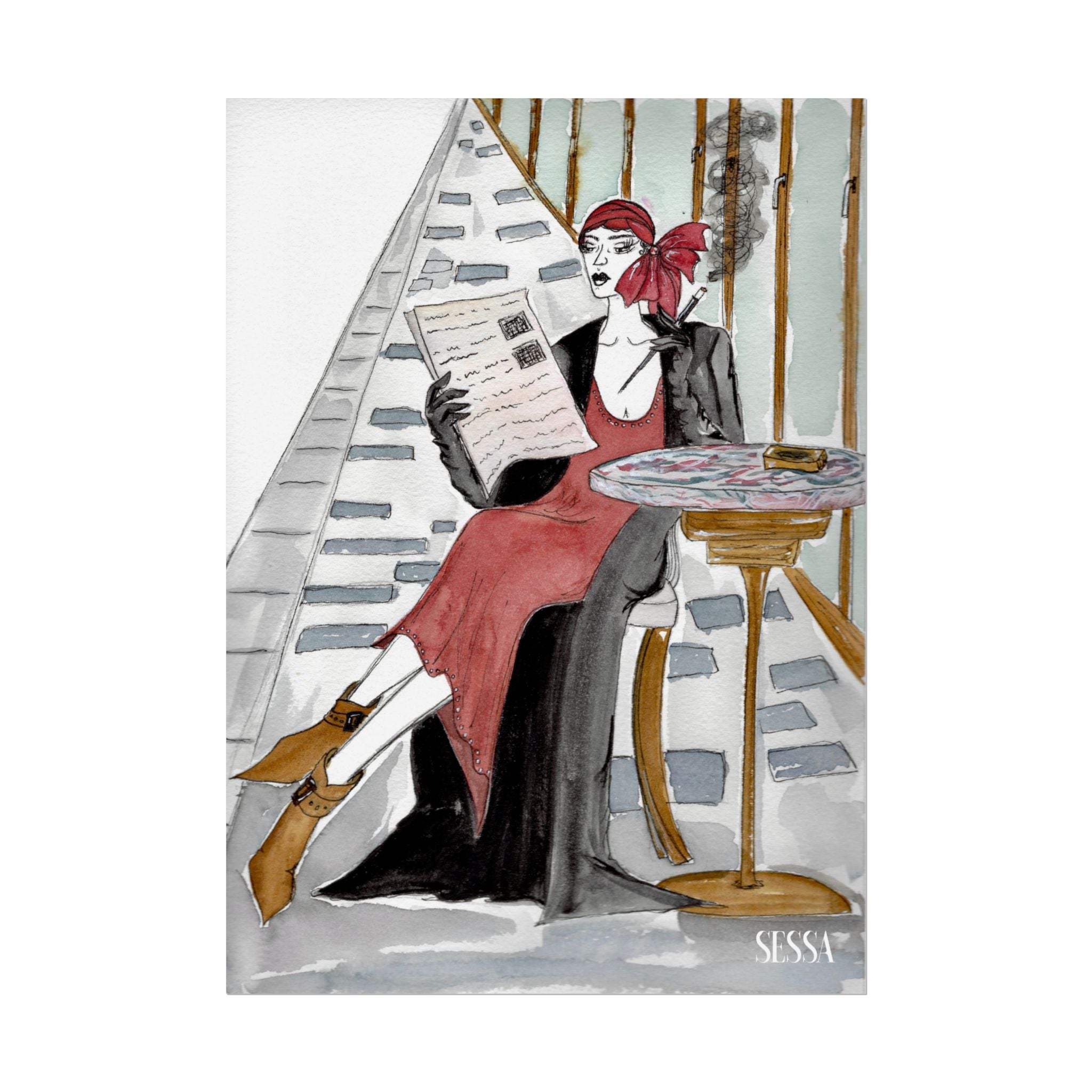 This print is from Day in the Life of a Woman in New York series, which is a collection of watercolor and ink fashion illustrations. It is made on demand, ensuring full sharp color fidelity and archival quality. Perfect for art lovers and fashion enthusiasts, this poster adds a touch of elegance and chic to any space.