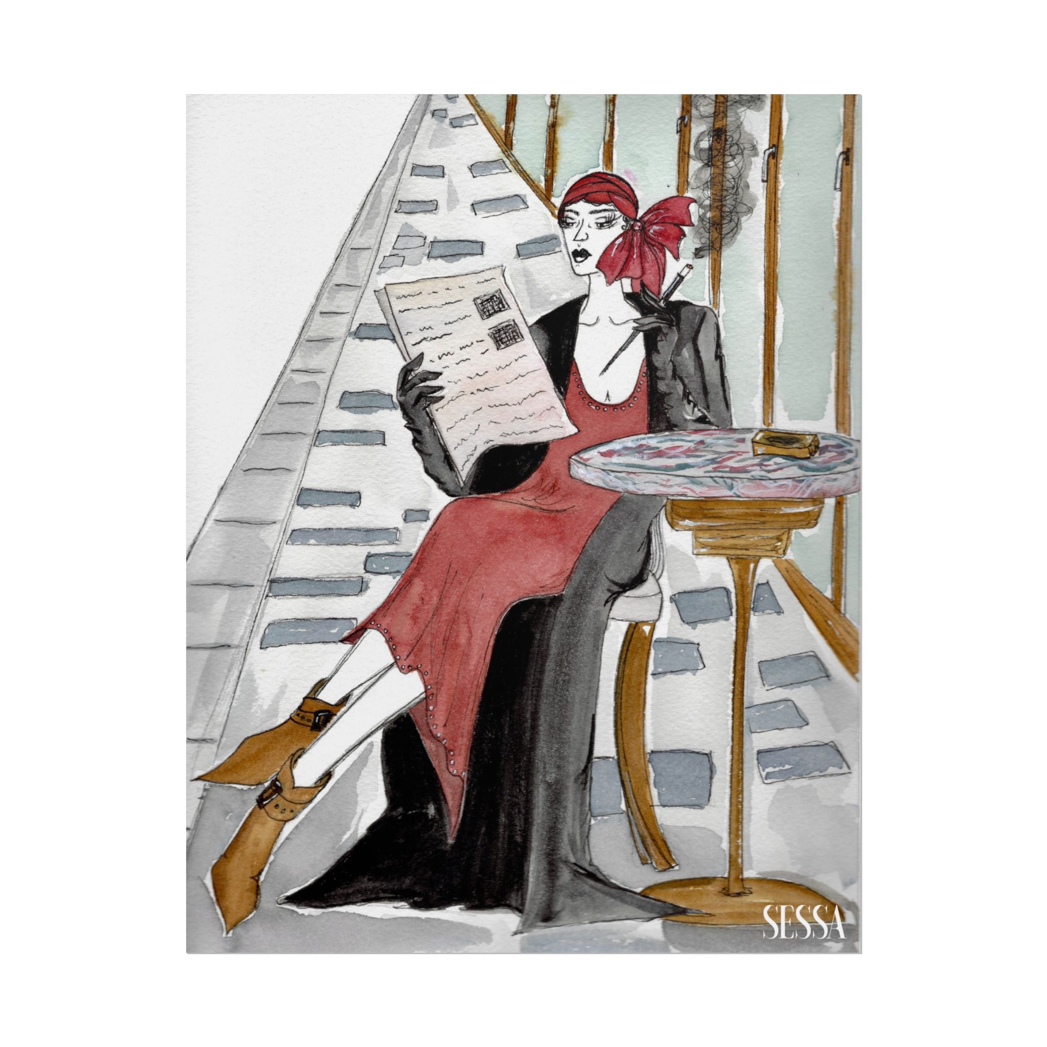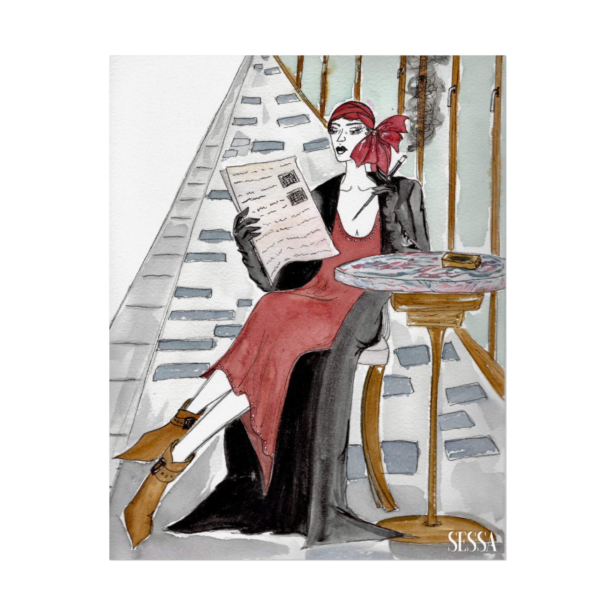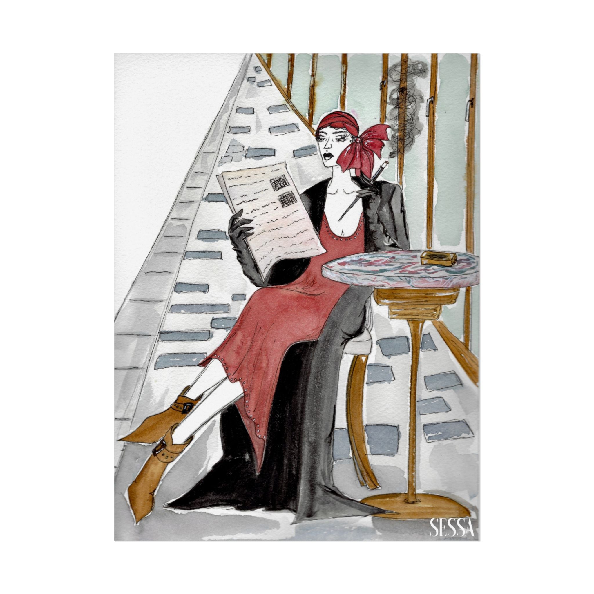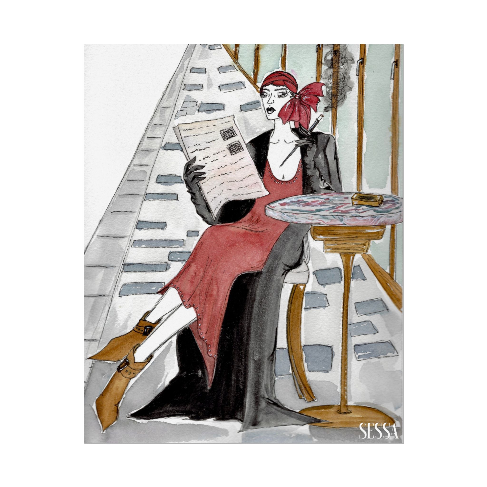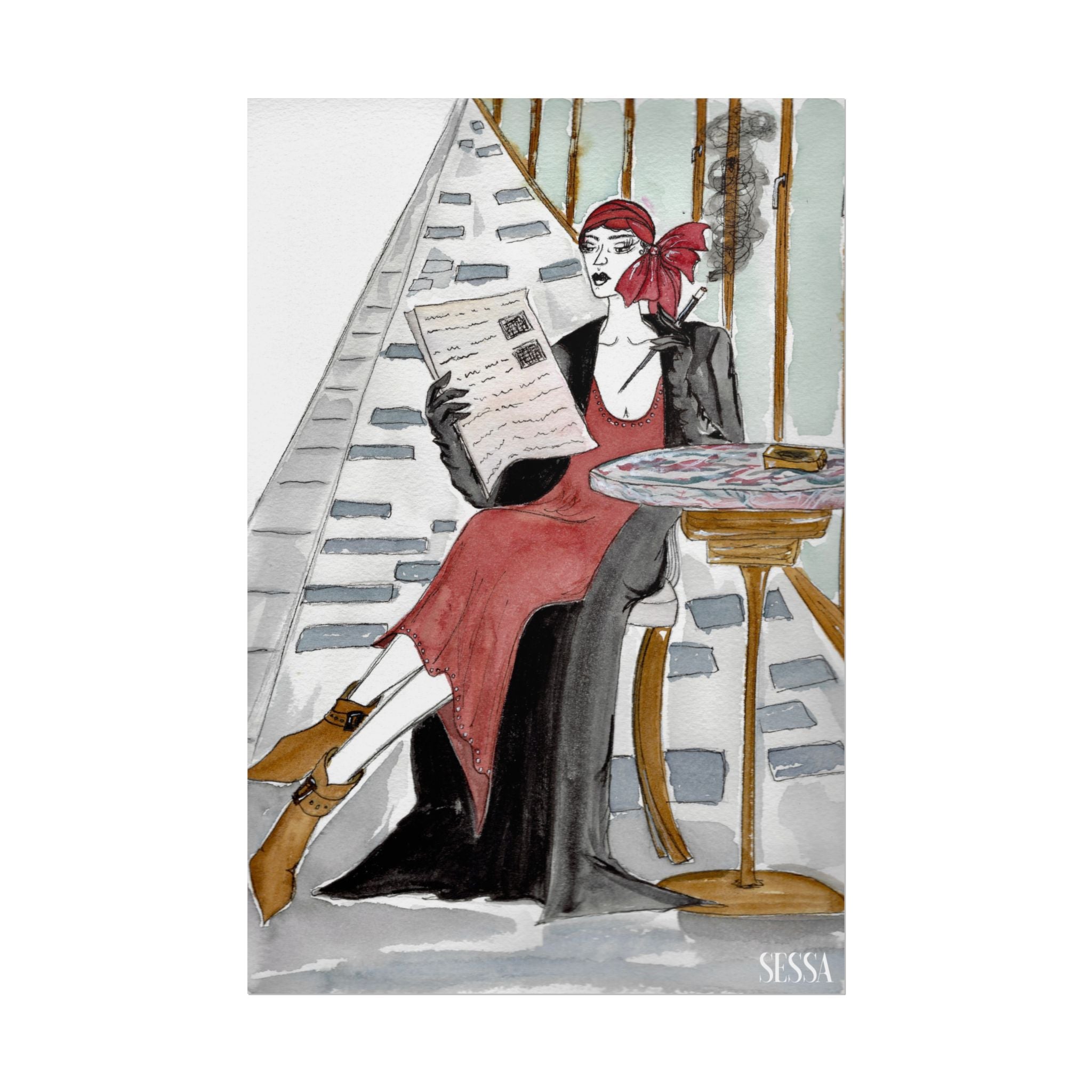 This print is from Day in the Life of a Woman in New York series, which is a collection of watercolor and ink fashion illustrations. It is made on demand, ensuring full sharp color fidelity and archival quality. Perfect for art lovers and fashion enthusiasts, this poster adds a touch of elegance and chic to any space.